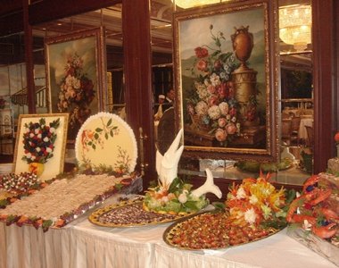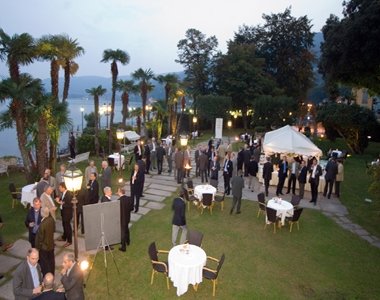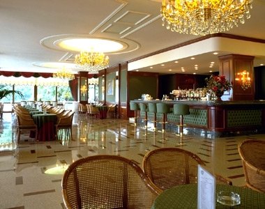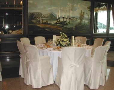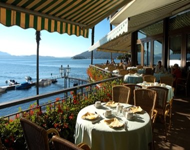 La sala è caratterizzata da arredamenti eleganti e splendidi lampadari in cristallo di Boemia: dalla sala è possibile ammirare il suggestivo panorama delle Tre Isole Borromee.