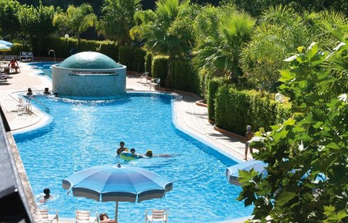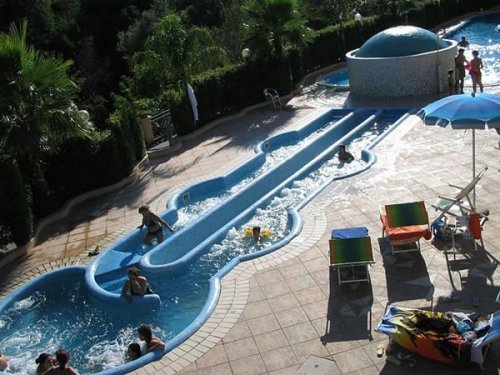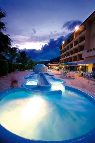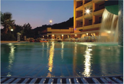La splendida piscina termale con percorso vascolare è alimentata dalle acque della Sorgente Padre Pio, portata in superficie alla temperatura di 38° C.