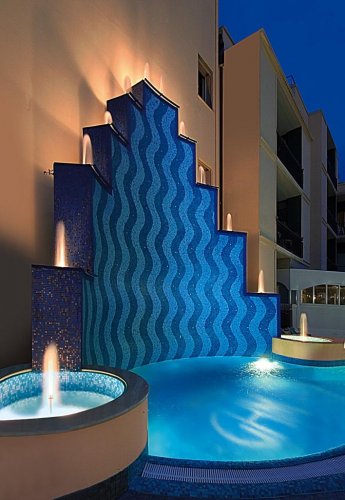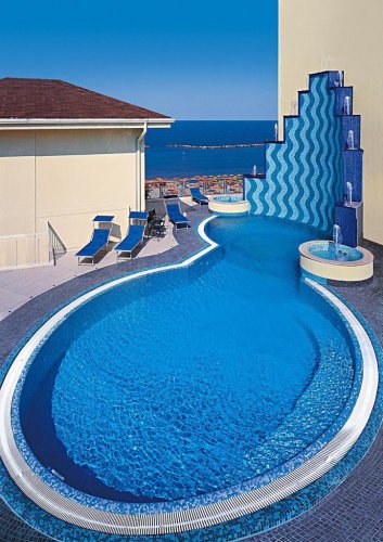 Una delle piscine esterne, situata sulla terrazza panoramica al 1° piano dell'albergo, è dotata di idromassaggio con cascata.