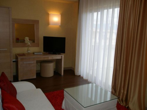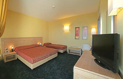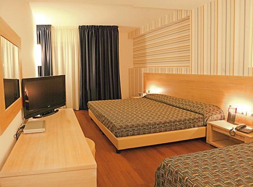 La struttura offre ampie e luminose camere modernamente rifinite e dotate di balcone, frigobar, cassaforte, TV color, impianto di climatizzazione, radio, telefono con linea diretta, bagno privato.