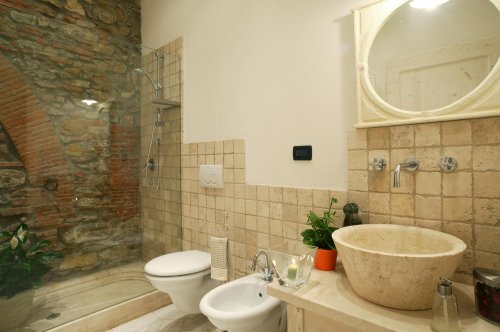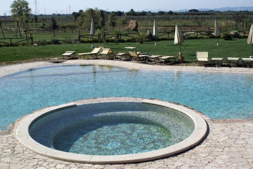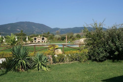 Gli appartamenti in stile toscano hanno l'ingresso indipendente e sono circondati da un grande giardino con piscina in pietra.