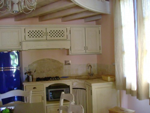 L'appartamento dispone di soggiorno con angolo cottura in muratura e pavimento in cotto smaltato bianco, divano letto matrimoniale, camera con parquet chiaro e letto matrimoniale con baldacchino, bagno con piatto doccia in travertino. Dotazioni disponibili: