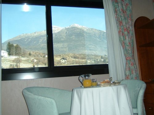 L'hotel è collegato alla Stazione ferroviaria di Aosta da un servizio privato di navetta .