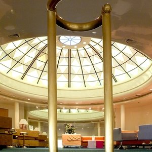 Costruito nel 1978, vanta un design innovativo con una personalità che emerge decisa già dalla facciata: l’intarsio di muratura, travi in acciaio e ampie vetrate cattura e riflette i raggi del sole e le luci notturne.
