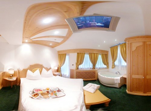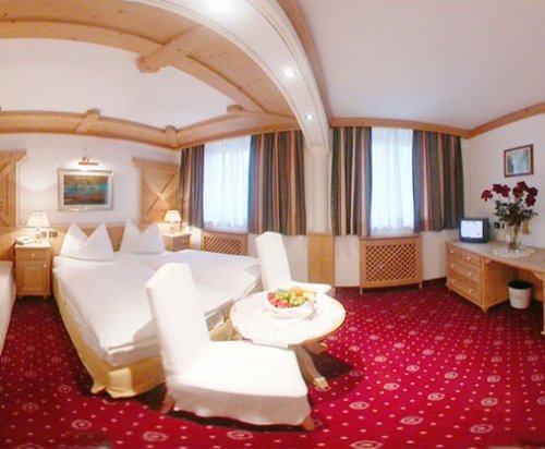Elegante bagno con doccia o vasca, scrittoio, telefono, cassaforte, asciugacapelli, TV Satellitare (con ampia scelta di canali internazionali), connessione ad internet, possibilità di aggiungere letti, alcune delle camere hanno il balcone e vista panoramica sulle Dolomiti.