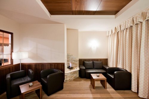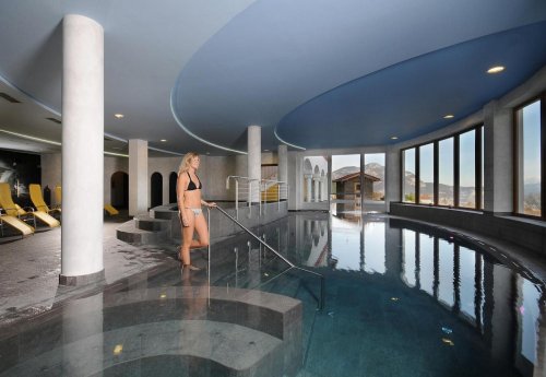 L'hotel accoglie gli ospiti in un ambiente di charme e dispone di sala lettura, Spa che si estende su più di 1500 mq con saune di cui una esterna in baita rustica, bagno turco, frigidarium, piscina interna ed esterna, idromassaggio e centro estetico.