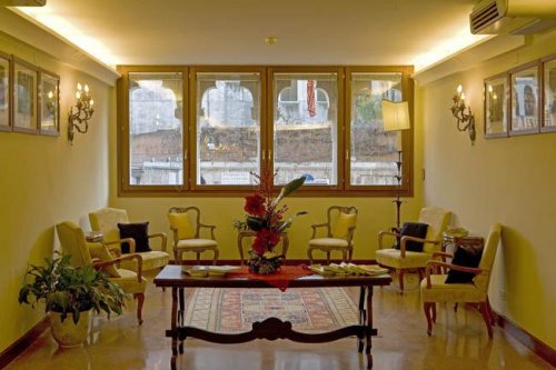 La struttura consiste in un nobile palazzo degli inizi del quattrocento con arredi e atmosfere tipiche veneziane e dispone di verdeggiante giardino interno, Internet Point, servizio di portineria notturno, servizio reception 24 ore su 24, parcheggio convenzionato in Piazzale Roma.