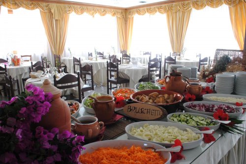 Oltre a una splendida sala ristorante climatizzata, la struttura dispone di un piacevole terrazzo ristorante affacciato sul mare, di un Bar con giardino attrezzato per spettacoli serali e di un ristorante à la carte nei giardini con cucina a vista.