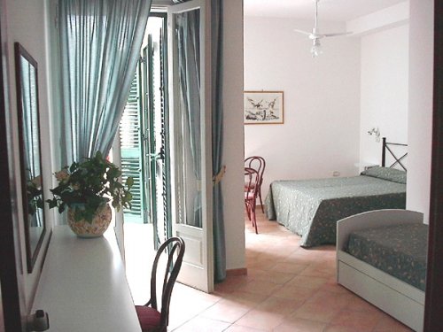 Camere disponibili: Singola, Doppia, Matrimoniale, Tripla, Quadrupla, Doppia uso Singola, Singola vista Mare, Matrimoniale vista Mare, Doppia uso Singola vista Mare.