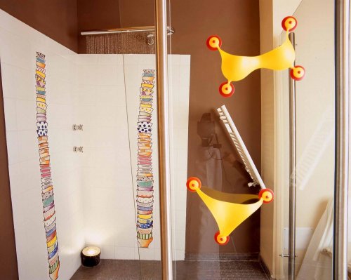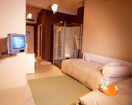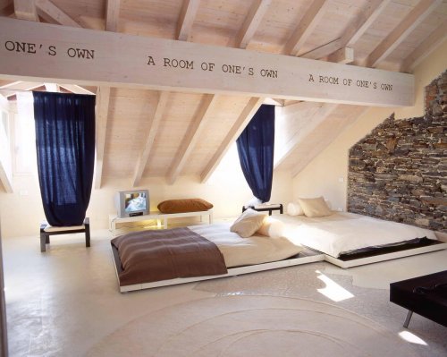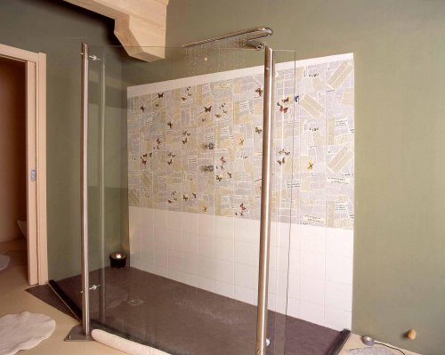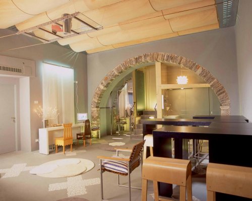 La recente ristrutturazione ha bilanciato esigenze contemporanee e caratteri distintivi della struttura, come i soffitti lignei e a cassettoni. La particolarità dello spazio doccia nella zona notte, i pannelli di ceramica che lo decorano ognuno di argomento letterario o artistico, sembrano elementi dinamici inseriti in un contesto ambientale incorrotto e senza tempo.