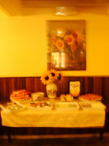 La ricca e variegata colazione a buffet viene servita nell'apposita sala.