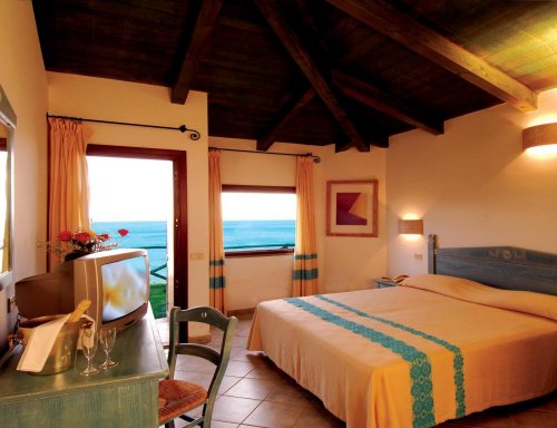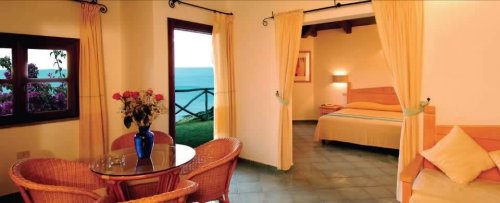 Le camere Superior, ampie e suggestive, godono di una splendida vista sulla laguna di Chia e dispongono di un piccolo giardino privato.