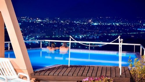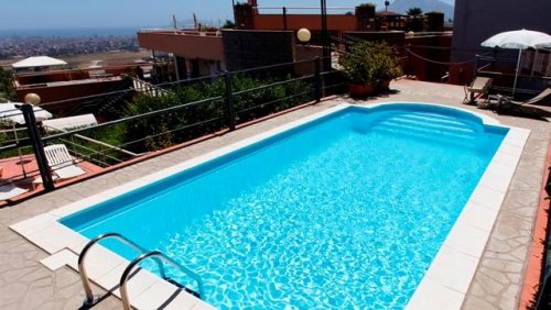 La terrazza panoramica ospita una splendida piscina estiva con idromassaggio e una pisicna più piccola per bambini.
