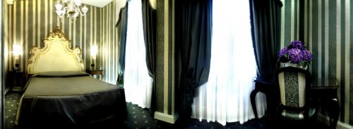 Le camere sono finemente decorate con dettagli del vetro di Murano e impreziosite da un ricca tappezzeria.