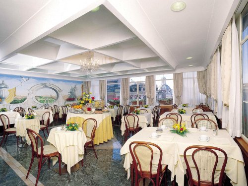 La colazione continentale a buffet viene servita nella panoramica sala colazione dalle ore 7.00 alle ore 10.00.