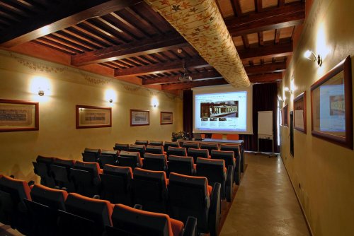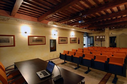 Arredata in pieno accordo con le dominanti stilistiche dell'intero palazzo, la sala offre la possibilità di 36 posti, videoproiettore, collegamento alla rete, microfono, ottimo impianto di amplificazione e lavagna a fogli mobili.