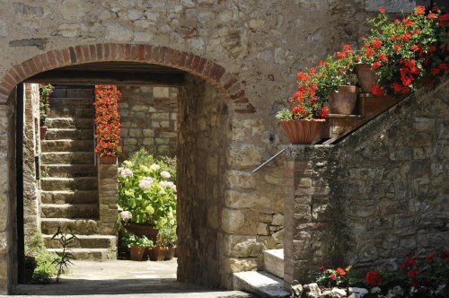 Il Borgo è composto da suggestivi edifici in pietra, alcuni signorili, altri di derivazione rurale, perfettamente conservati e sapientemente restaurati, che si affacciano su vicoli e piccole piazze tipiche del Chianti.