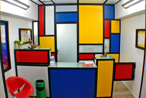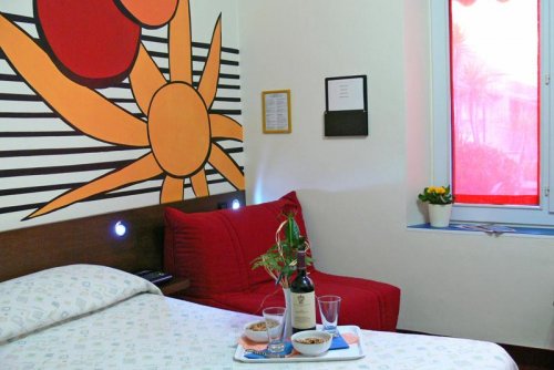 Le camere, così come gli spazi comuni, si ispirano negli arredi e nei decori a celebri dipinti dell'arte moderna e contemporanea (opere di Mondrian, Calder, Albers, Dorazio, Fedriani e Van Doesburg).