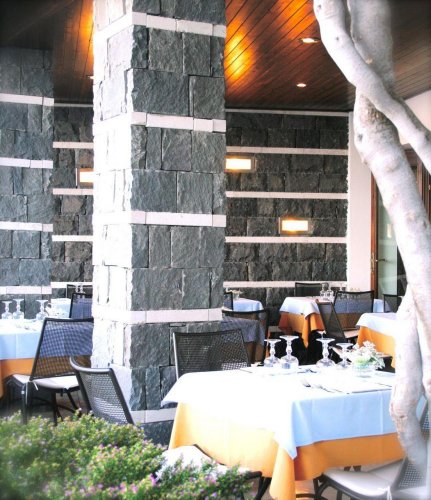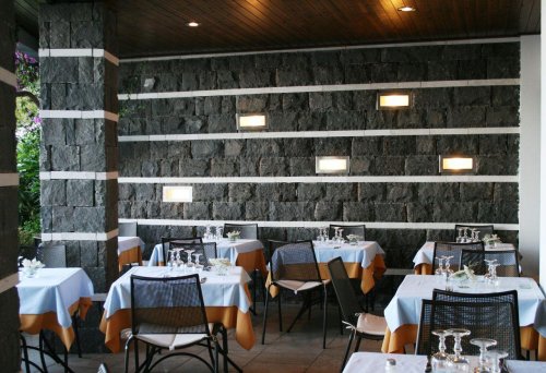 Il Ristorante dispone di 3 sale, di cui una interna completamente climatizzata, una esterna sotto l'ombreggiata veranda, e un magnifico spazio all'aperto (presso la terrazza) per romantiche cene a lume di candela.