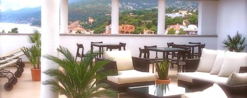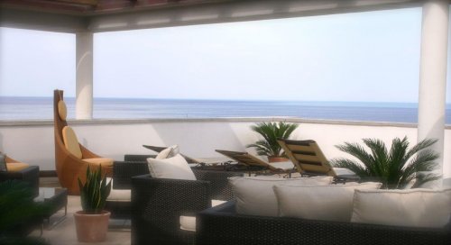 La terrazza all'ultimo piano è provvista di lettini Solarium e divanetti per il relax, da cui ammirare il panorama mozzafiato sul mare e sulle montagne.