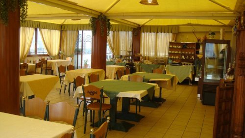 La Sala Ristorante con vista panoramica, disponibile anche per banchetti, è aperta a pranzo e a cena con prelibate specialità regionali.