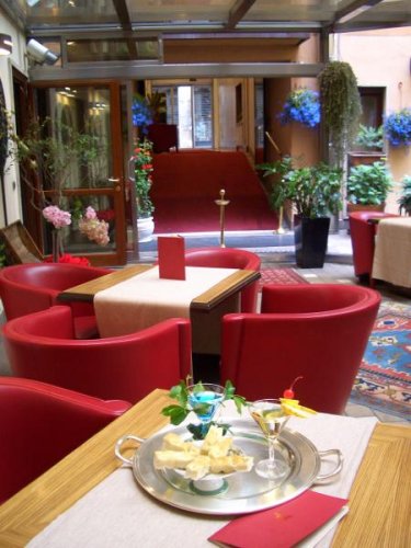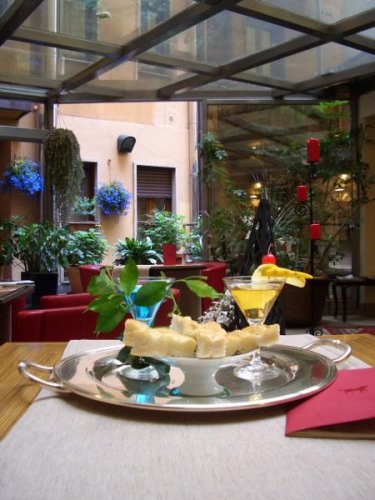 Il Bar La Corte è il cuore dell’hotel, luogo di ritrovo informale per un aperitivo, un drink o uno snack caldo o freddo, sapientemente preparato.