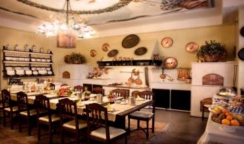 Il buffet della colazione viene servito nelle antiche cucine del Castello.