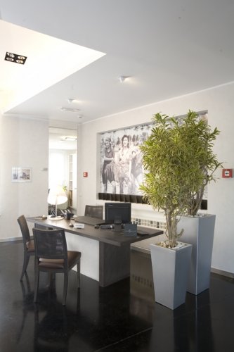 A disposizione degli ospiti un'elegante Hall con pavimento in resina nero, finiture in acciaio, mobili in rovere tinta moro, Reception aperta 24 ore al giorno, dotata di ascensori, area fumatori, Internet Point, servizio fax e fotocopie.