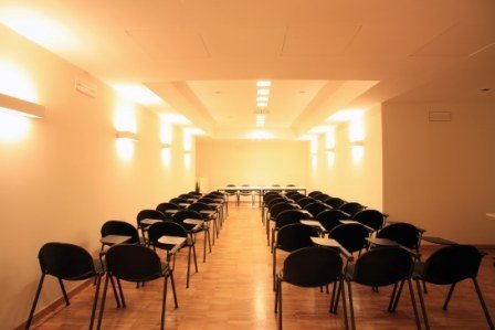 Sala Meeting da 30 a 45 persone con disposizione a platea, con sedie a ribaltina e tavolo relatori. Attrezzatura: videoproiettore, schermo, e su richiesta, lavagna a fogli mobili, lavagna luminosa, cancelleria.