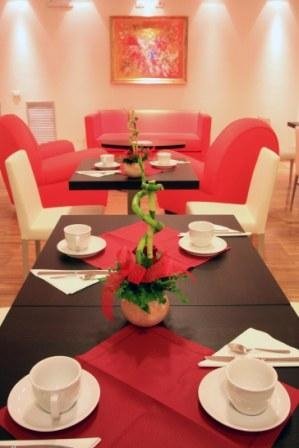 La Sala colazioni è situata al primo interrato, dove l’attenta modulazione di colori, materiali e illuminazione, sopperiscono alla mancanza di aperture con luce diretta. La colazione viene servita a buffet, e alla classica colazione continentale si affiancano un vasto assortimento di frutta fresca, succhi di frutta, yogurt, cereali, dolci artigianali, una selezione di salumi e formaggi; uova e bacon preparati al momento.