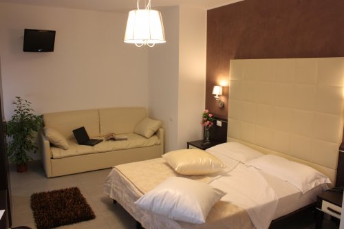 Tutte le camere, ampie e luminose, sono dotate dei migliori comfort come aria condizionata, TV color satellitare LCD, radio, frigobar, cassetta di sicurezza, connessione Wi-Fi a Internet, bagno privato con asciugacapelli, doccia o vasca.