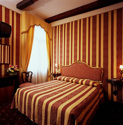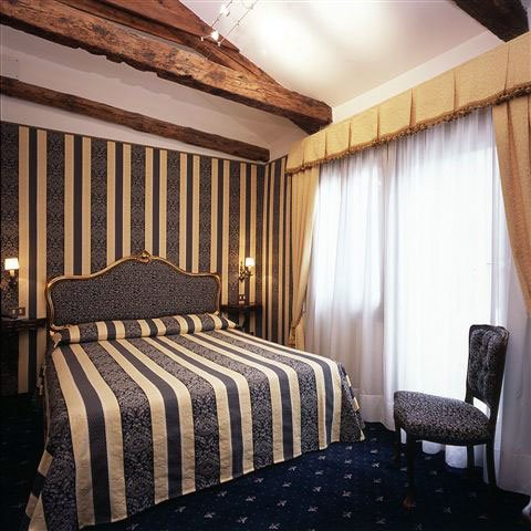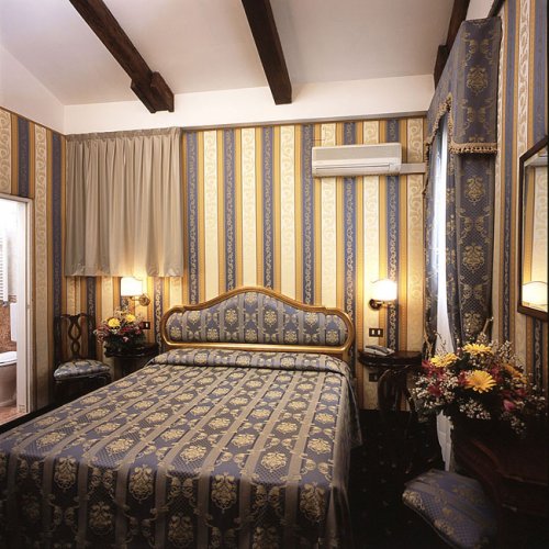 Tutte le stanze sono arredate in stile Veneziano del '700 e dispongono di letti con testiere imbottite, mobili laccati e in legno, tappezzeria damascata.