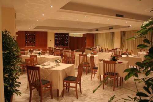 La cucina propone squisite ricette a base di terra e di mare, insieme a un'ampia scelta di vini locali, nazionali e internazionali.