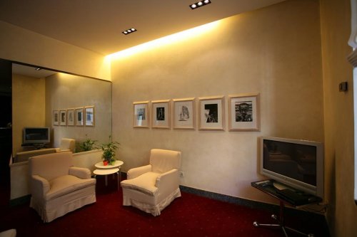 Tutte le stanze sono dotate di TV color satellitare LCD con Sky Sport e Cinema, telefono, aria condizionata, connessione Wi-Fi a Internet, frigobar, cassaforte, servizio sveglia, bagno privato rifinito in marmo color ocra con doccia o vasca, set di cortesia.