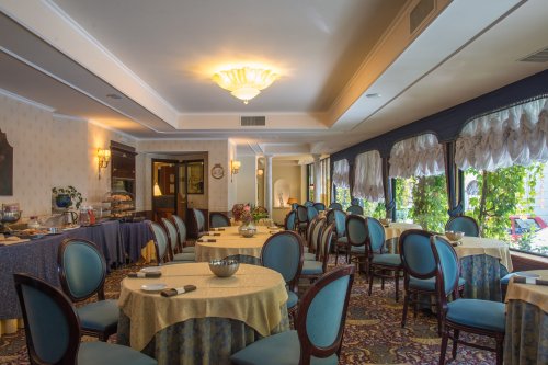 Aperto tutto l'anno, l'hotel dispone di ampi saloni per banchetti e conferenze, sala ristorante, veranda sul lago e bar, camere fornite di ogni confort.