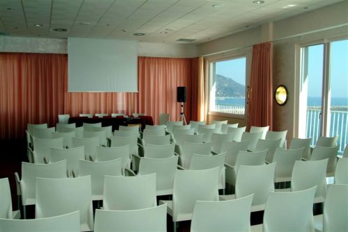 La sala, attrezzata secondo le esigenze di un mercato congressuale moderno, gode di splendida vista panoramica sul mare.