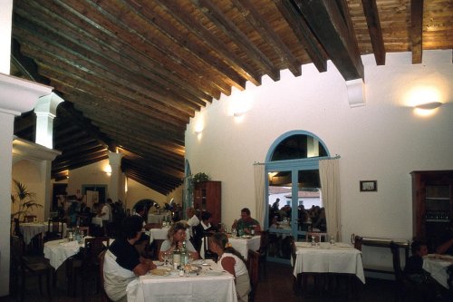 La struttura dispone di due sale ristorante, di cui una interna climatizzata e una esterna con vista panoramica, in cui è possibile accomodarsi per la prima colazione, il pranzo e la cena.
