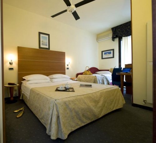 Le camere arredate in stile moderno sono dotate di aria condizionata, frigobar, TV color satellitare, Pay TV gratuita, telefono con linea diretta, connessione ADSL a Internet, bagno privato con asciugacapelli, set cortesia.