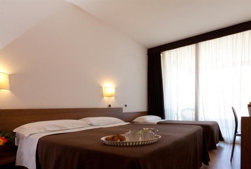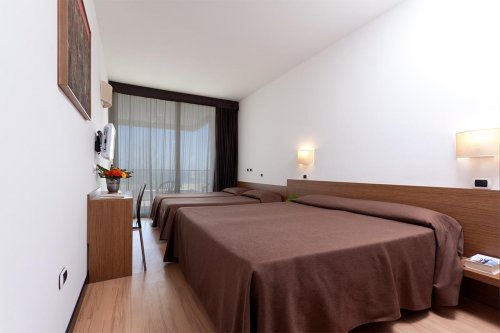 L'hotel dispone di 50 camere insonorizzate e climatizzate, arredate con semplicità e funzionalità nel massimo del comfort. Tutte le stanze sono dotate di ampi balconi, TV color, telefono diretto, cassaforte, spaziosi bagni con box doccia o vasca, asciugacapelli.