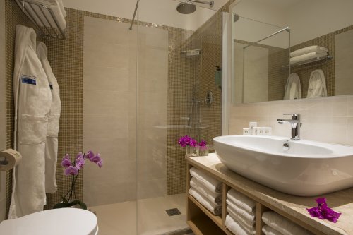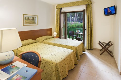 Recentemente rinnovate, tutte le stanze dispongono di aria condizionata, telefono, TV color satellitare, Sky TV, frigobar, cassetta di sicurezza, terrazza o balcone con vista sul parco o sul mare, bagno privato.