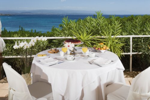 La prima colazione viene servita al buffet nell'apposita sala, oppure nella splendida veranda con vista sulla torre spagnola del Lazzaretto e su Capo Galera.