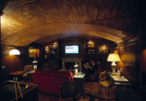 L'American Bar adiacente al ristorante, intimo, con una raffinata atmosfera, è caratterizzato dalla libreria che racchiude una collezione di antichi volumi e preziose porcellane cinesi.