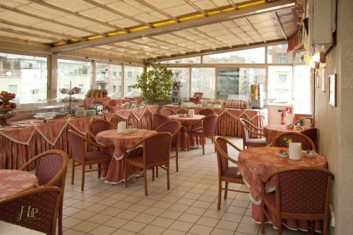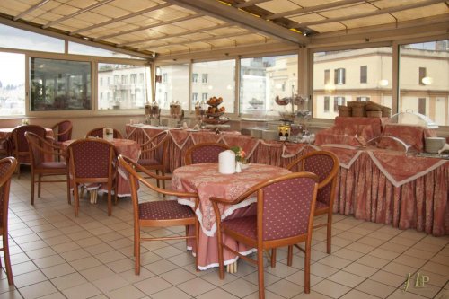 L'hotel propone una ricca prima colazione a buffet servita in terrazza.
