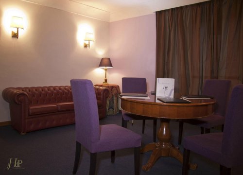 Le junior suite hanno la vasca idromassaggio, stira-pantaloni, cyclette, letto king size e divano letto.