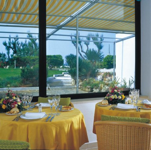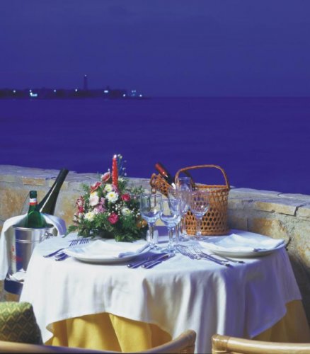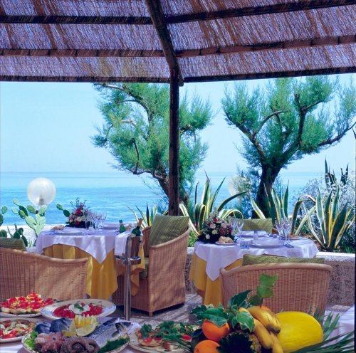 La struttura gode di una splendida terrazza sul mare circondata da palme monumentali e da un prato all’inglese che degrada verso la spiaggia sabbiosa, attrezzata di ombrelloni e comodi lettini o sdraio.