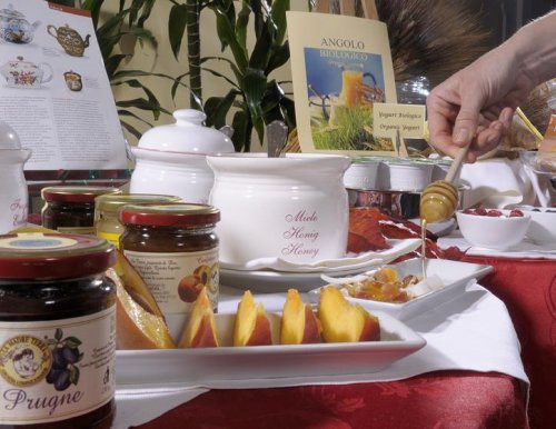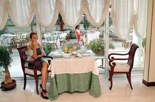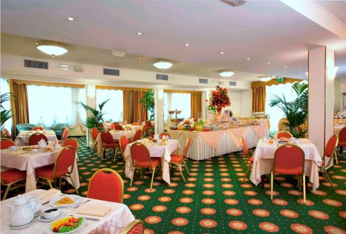 La prima colazione viene servita al mattino dalle ore 7:00 alle 12:00, con un buffet dolce e salato a base di prodotti freschi della migliore pasticceria Riminese, brioches calde, gustosissime torte della casa, pane appena tostato, uova strapazzate, affettati misti, frutta fresca, cereali, ampia scelta di tè, tisane, caffè, succhi ricchi di vitamine, verdure centrifugate.