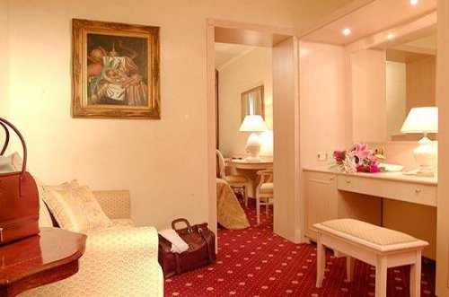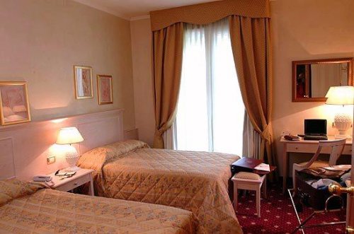 Accoglienti e spaziose, sono arredate con mobili in stile e dotate di flat TV color satellitare, Pay TV, telefono diretto, frigobar, impianto di climatizzazione autonomo, connessione Wi-Fi a Internet, bagno privato.