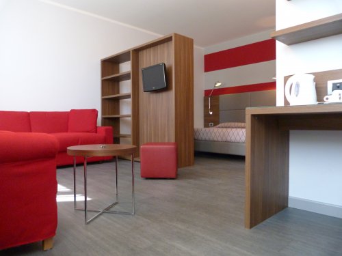 La struttura dispone inoltre di 12 appartamenti di cui 6 monolocali e 6 bilocali distribuiti in 3 palazzine.