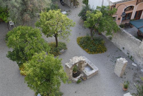 Dal bar si accede su ampia terrazza, che affaccia sul bellissimo giardino di agrumeti, dove si serve la prima colazione o ci si può fermare per momenti di relax.