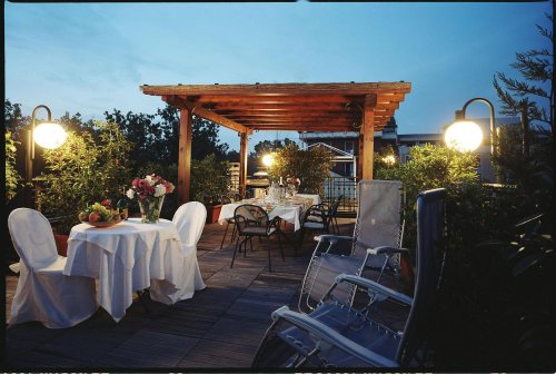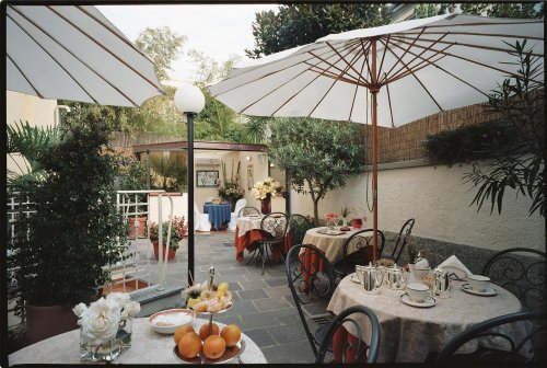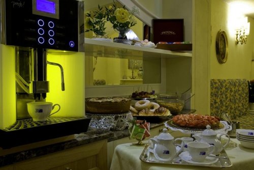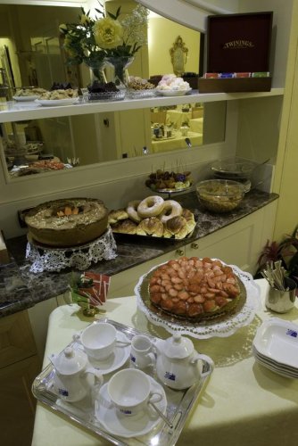 La prima colazione con ricco buffet continentale, viene servita in una accogliente sala interna o presso il fresco giardino durante la bella stagione.